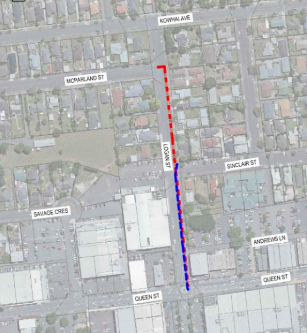 - There will be restrictions on traffic going both ways along Kowhai Ave, where it intersects with Logan Street.