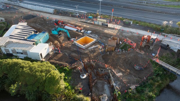 Other progress on this project includes the Te Aranga connection to the Porirua East weir (a concrete structure that regulates the flow of wastewater into the storage tank) and the realignment of the existing water pipes to fit around, and connect to, the site.
