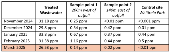 The treated wastewater quality was compliant with key consent conditions for total suspended solids and BOD (Biochemical Oxygen Demand) but the plant failed to comply with the faecal coliform limit from 5 to 7 March. The faecal coliform level has been within compliance limits since 8 March and an investigation is underway to determine the cause of the noncompliance. We have also made changes to our process to reduce the level of ammonia nitrogen in the treated wastewater – you can read more about that below.