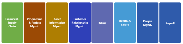 The coloured boxes in the diagram below highlight the system areas of the RFP and correspond to the capability model areas.