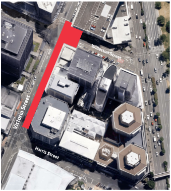 - Willeston Street will remain closed when turning left from Victoria Street. Access is still available from Jervois Quay for residents and drivers using the car park building.