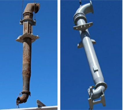 Four new pumps prior to installation Old riser replaced by a new riser