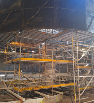 Figure 2: Scaffolding around drive cage for recoating |