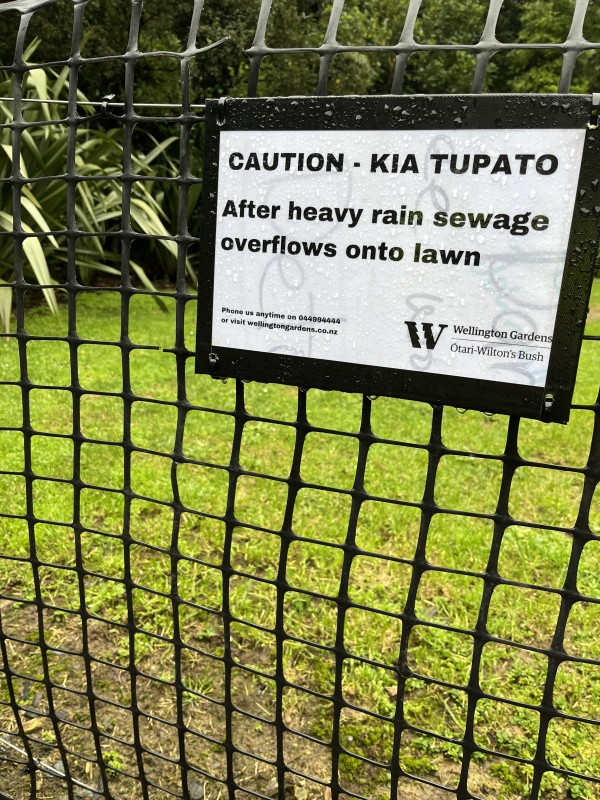 In moderate and heavy rainfall, this pipe overflows into the stormwater network, discharging into Kaiwharawhara Stream and the nearby Otari-Wilton’s Bush.