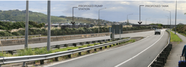 The tank will be located north of Porirua railway station, between SH1 and the railway line. It will hold up to seven million litres (about three Olympic-sized swimming pools) of wastewater when there is heavy rain.