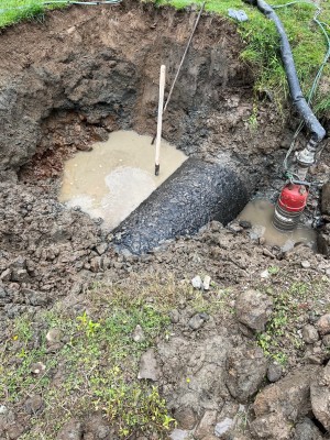 Excavating around several sections of pipe, applying a new coating to protect them from corrosion, then re-burying them