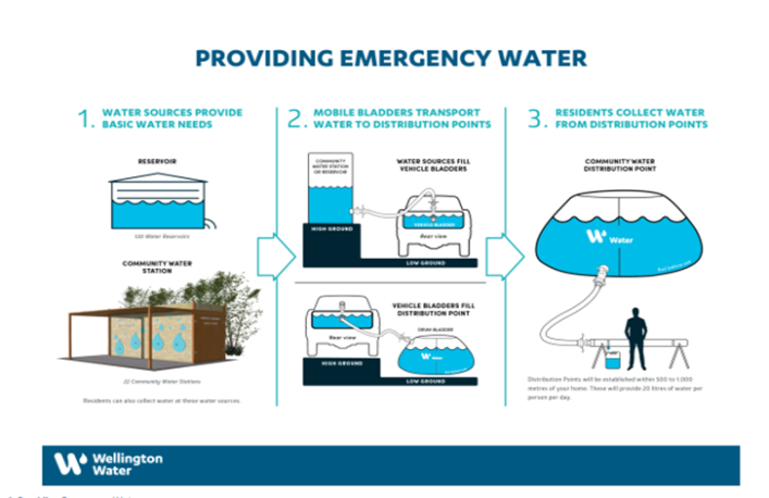Wellington Water will work closely alongside the Wellington Region Emergency Management office (WREMO), councils and the National Emergency management Agency (NEMA) to co-ordinate and manage the distribution of emergency water.